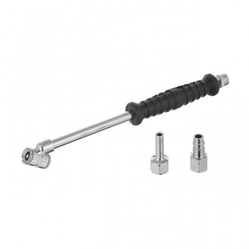 Удлинитель для накачки сдвоенных и обычных колес предназначен для того, чтобы облегчить процесс накачки сжатым воздухом автомобильных шин. Пригодится в любых случаях, особенно удобен для накачки шин грузовых авто, двойных (спаренных) шин со сложным доступом к вентилю, когда дотянуться до него обычным пистолетом для подкачки достаточно сложно. Данный удлинитель популярен в шиномонтаже, на СТО и в автосервисах, а также у автовладельцев, поскольку позволяет быстро и без усилий накачать шины.