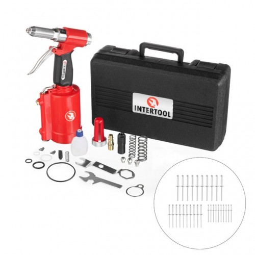 Пистолет заклепочный пневматический в чемодане с аксессуарами INTERTOOL PT-1304