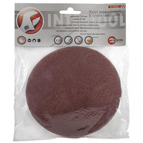 Круг наждачный самоклеющийся 125 мм, К120, уп. 10ед. INTERTOOL BT-0562