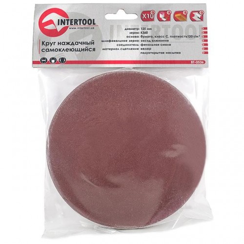 Круг наждачный самоклеющийся 125 мм, К360, уп. 10 ед. INTERTOOL BT-0536