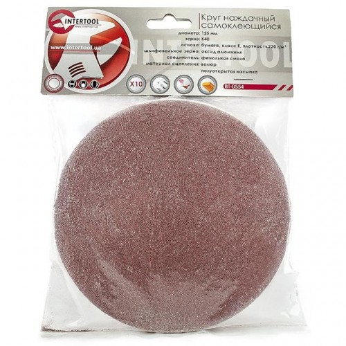 Круг наждачный самоклеющийся 125 мм, К40, уп. 10ед. INTERTOOL BT-0554