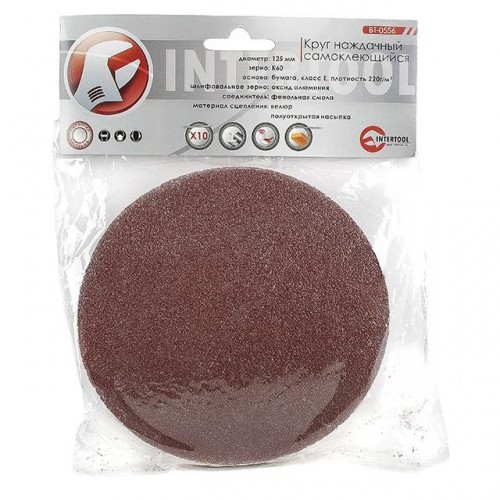 Круг наждачный самоклеющийся 125 мм, К60, уп. 10ед. INTERTOOL BT-0556