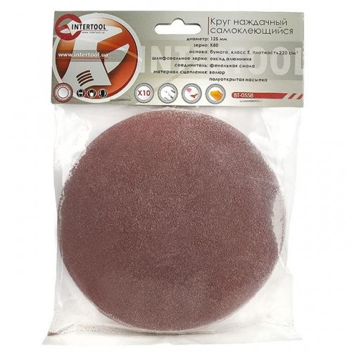 Круг наждачный самоклеющийся 125 мм, К80, уп. 10ед. INTERTOOL BT-0558