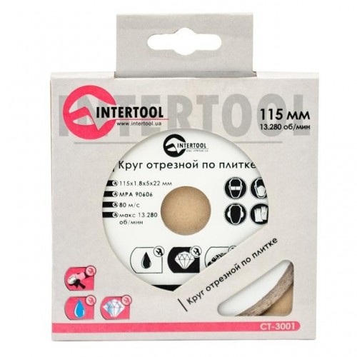 Диск отрезной алмазный со сплошной кромкой 115 мм, 16-18% INTERTOOL CT-3001