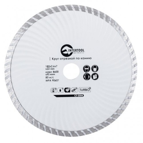 Диск отрезной Turbo, алмазный 180 мм, 16-18% INTERTOOL CT-2004