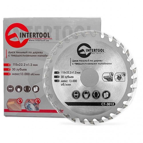 Диск пильный по дереву с твердосплавными напайками 115*22.2*1.4мм, 30 зубьев INTERTOOL CT-3012