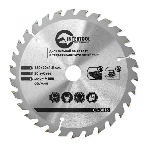 Диск пильный по дереву с твердосплавными напайками 160x20x1,5 мм; 30 зубьев INTERTOOL CT-3016