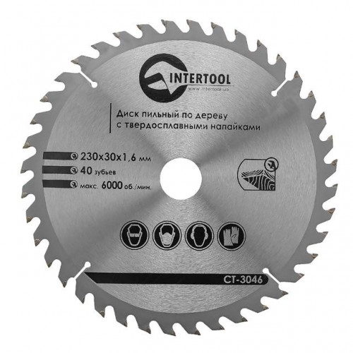 Диск пильный по дереву с твердосплавными напайками 230x30x1,6 мм; 40 зубьев INTERTOOL CT-3046