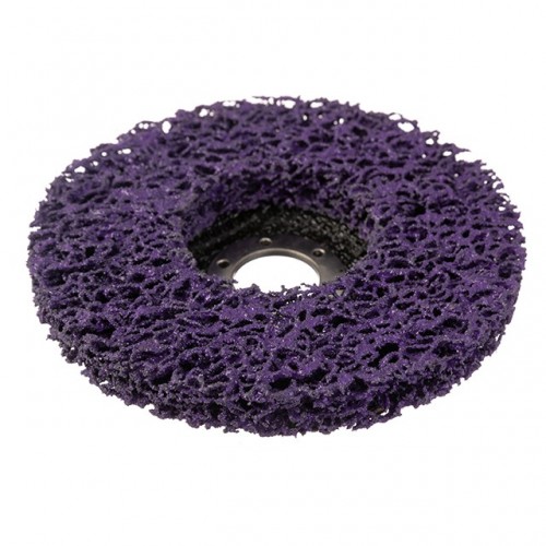 Это отличая альтернатива щетками из проволоки и лепестковым дискам, благодаря своей пористой структуре, круг не забивается продуктами шлифования и не нагревает поверхность, в итоге краска не "плывет" и отлично счищается.