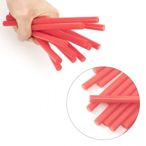 Клеевые стержни красного цвета, изготовлены из пластичного термоплавкого клея – этиленвинилацетата, безопасного для здоровья.