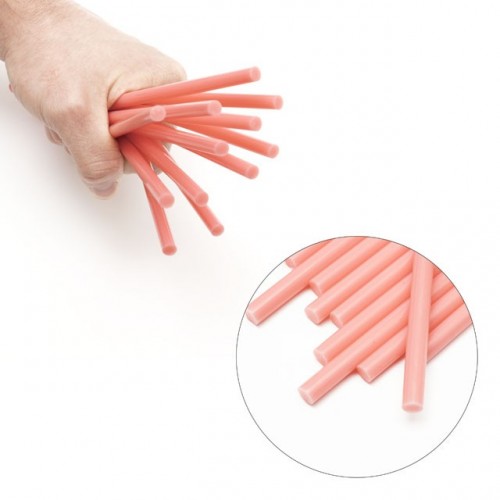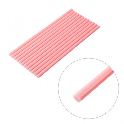 Клеевые стержни розового цвета, изготовлены из пластичного термоплавкого клея этиленвинилацетата, безопасного для здоровья. В комплекте 12 стержней.
