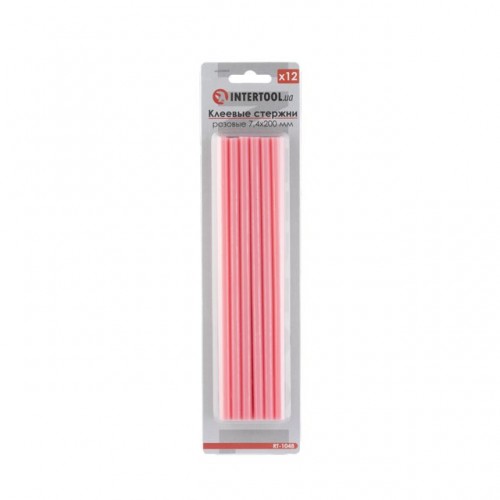 Комплект розовых клеевых стержней 7.4мм*200мм, 12шт. INTERTOOL RT-1048