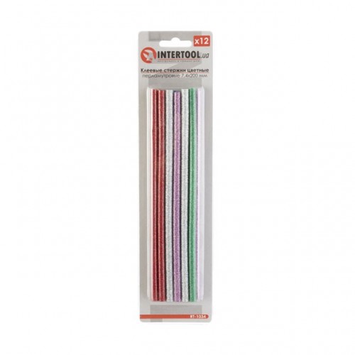 Комплект цветных перламутровых клеевых стержней 7.4мм*200мм, 12шт INTERTOOL RT-1034