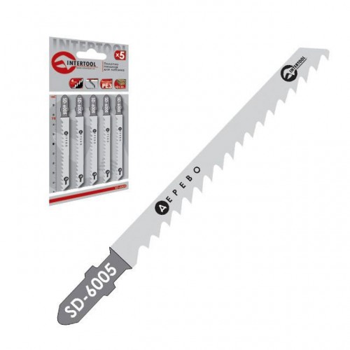 Пильное полотно по дереву SD-6005 предназначено для работы с электрическим лобзиком. Рабочая длина полотна составляет 75 мм, а его общая длина равна 100 мм. Шаг зуба полотна составляет 4 мм. Полотна в количестве 5 ед. комплектуются в картонную упаковку.