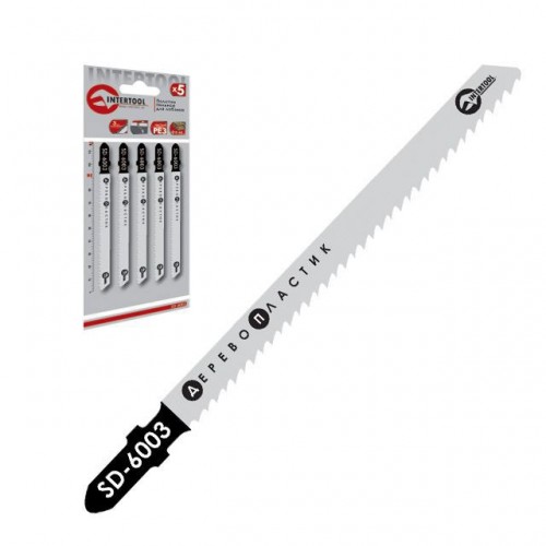 Пильное полотно для электролобзика SD-6003 позволяет работать с деревом и пластиком. Среднее расстояние между зубьев, равное 3мм, оптимально подходит для выполнения четкого и ровного пропила. Общая длина полотна составляет 116 мм, а рабочая длина – 90 мм. Полотна в количестве 5 ед. укомплектованы в картонную упаковку.