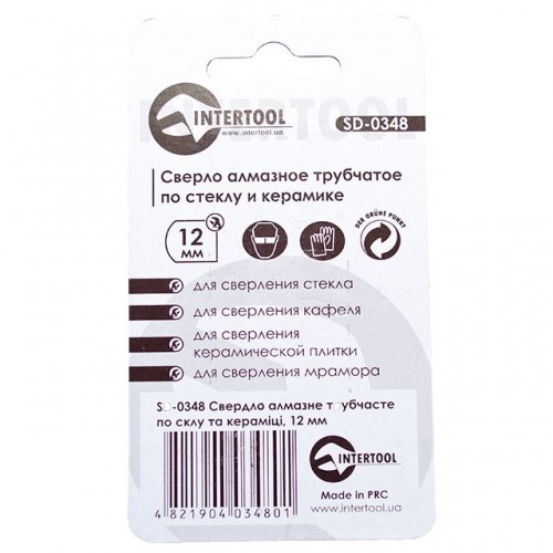 Сверло алмазное трубчатое по стеклу и керамике 12 мм INTERTOOL SD-0348