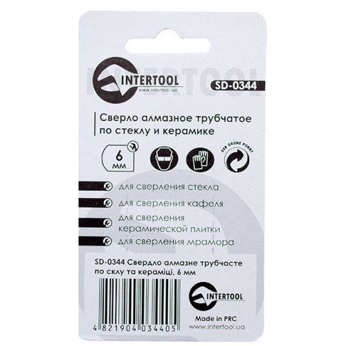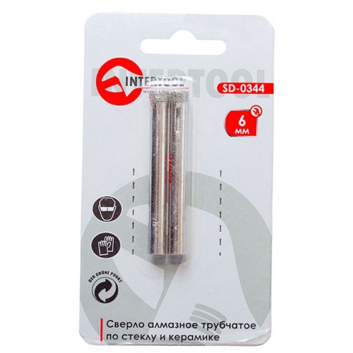 Сверло алмазное трубчатое по стеклу и керамике 6 мм INTERTOOL SD-0344