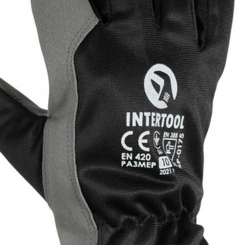 Перчатка кожаная комбинированная из высококачественной эко-кожи и полиэстеровой ткани 10" INTERTOOL SP-0175