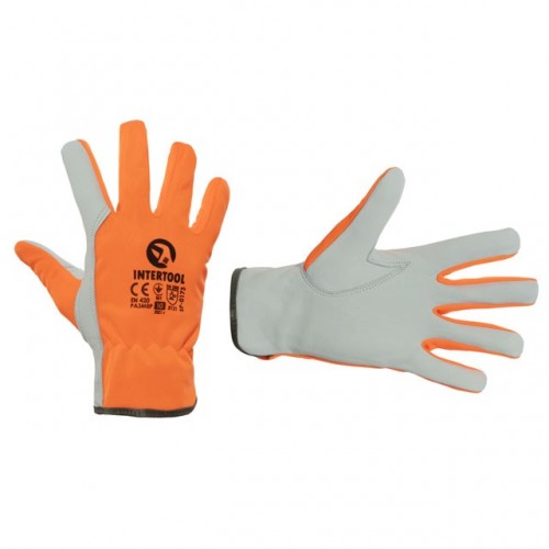 Перчатка кожаная комбинированная из высококачественной козьей кожи и флуоресцентной оранжевой ткани 10" INTERTOOL SP-0173