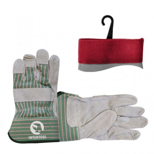 Перчатка замшевая из цельного материала с коттоновыми вставками 10,5", манжет обрезиненный INTERTOOL SP-0151