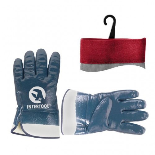 Перчатка маслостойкая (синяя) на основе трикотажа покрытая нитрилом с твердым манжетом 10.5" INTERTOOL SP-0001