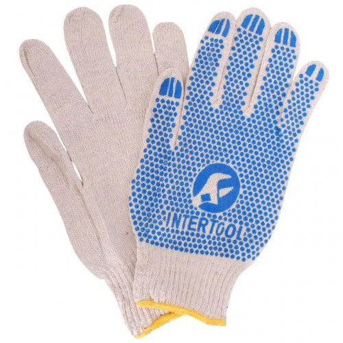 Перчатка хлопчатобумажная трикотажная с резиновым вкраплением с одной стороны (ПВХ синяя) INTERTOOL SP-0134