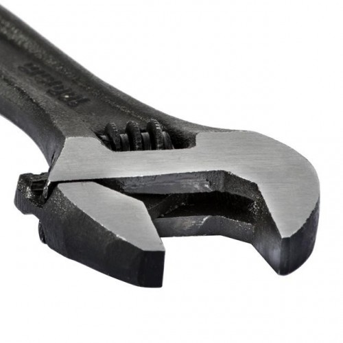 Разводной механизм прочный и не дает люфт в работе, благодаря конструкционным особенностям ключа. Длинная ручка позволит удобно маневрировать разводным ключом и применять еще больше усилия.