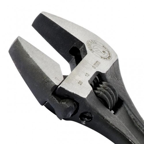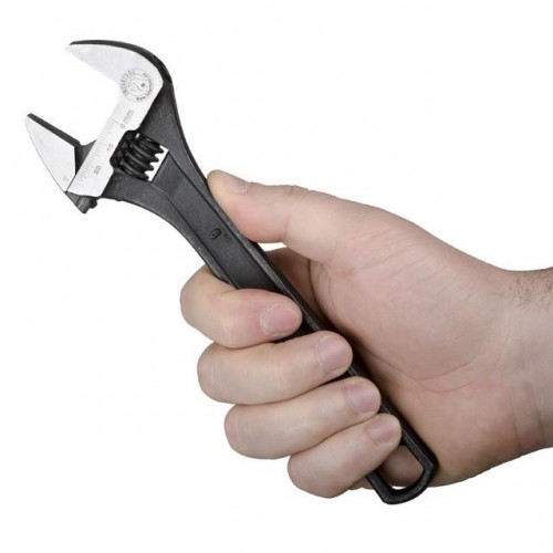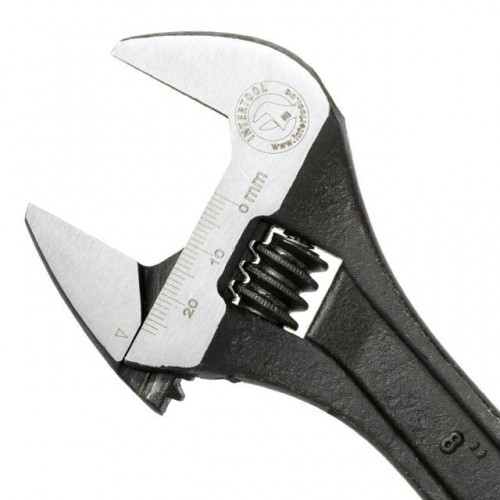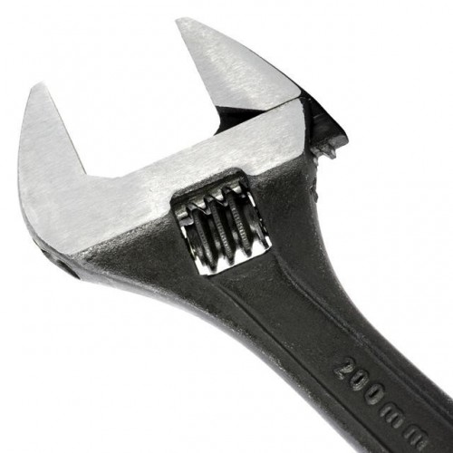 Разводной механизм прочный и не дает люфт в работе, благодаря конструкционным особенностям ключа. Длинная ручка позволит удобно маневрировать разводным ключом и применять еще больше усилия.