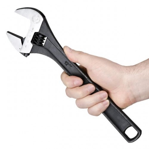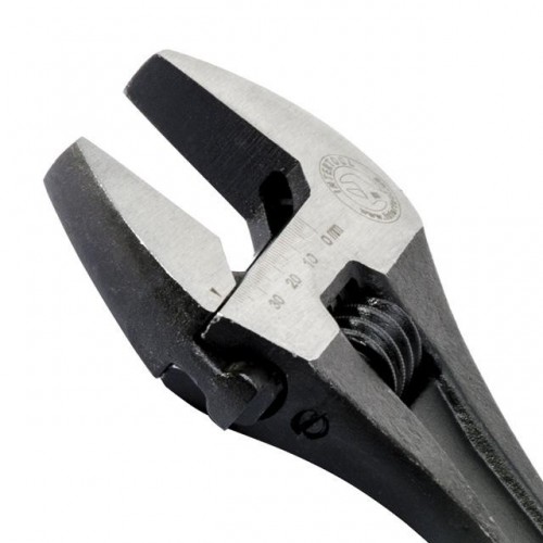 Разводной механизм прочный и не дает люфт в работе, благодаря конструкционным особенностям ключа. Длинная ручка позволит удобно маневрировать разводным ключом и применять еще больше усилия.