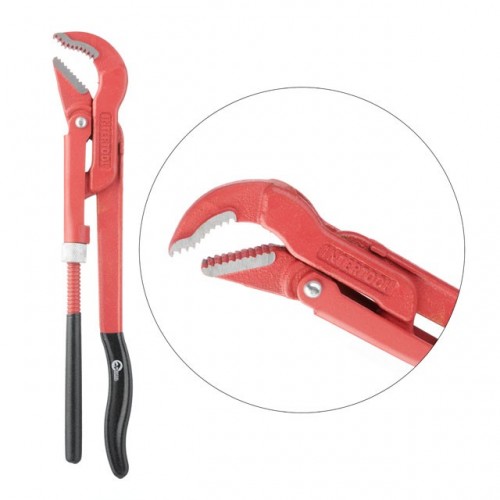 Ключ трубный 1" 45 град. ТМ INTERTOOL применяется практически во всех видах ремонтно-сантехнических работ. Губки расположены под углом 45 град. к ручкам. Диаметр захвата регулируется за счет подвижного нижнего рычага. Изготовлен из высококачественной инструментальной стали, что гарантирует высокую износостойкость и защиту от коррозии в процессе работы. Эргономичная прорезиненная рукоятка обеспечивает удобство захвата инструмента.