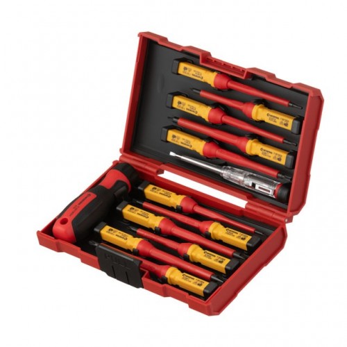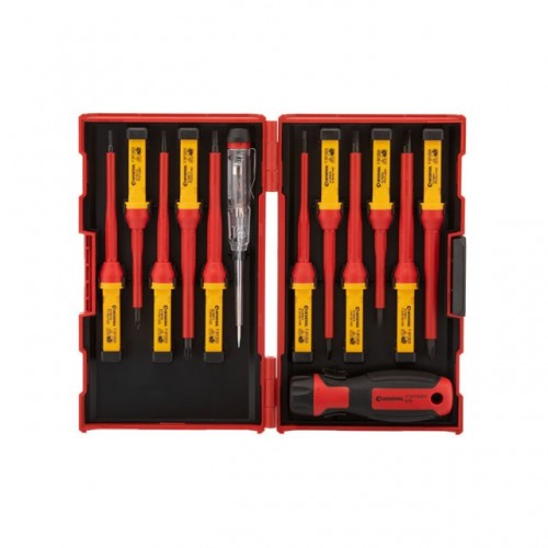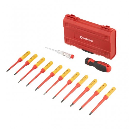 Набор изолированных отверток с отверткой индикатором 14 ед VDE (SL0.5*3.0*100мм, SL0.8*4.0*100мм, SL1.0*5.5*100мм, SL1.2*6.5*100мм, PH1*80мм, PH2*100 INTERTOOL VT-3614