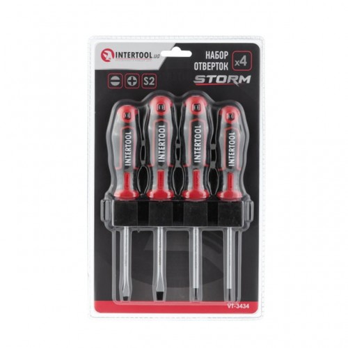 Набор отверток 4 ед ( SL5.0*100мм, SL6.0*100мм, PH1*100мм, PH2*100мм), STORM INTERTOOL VT-3434