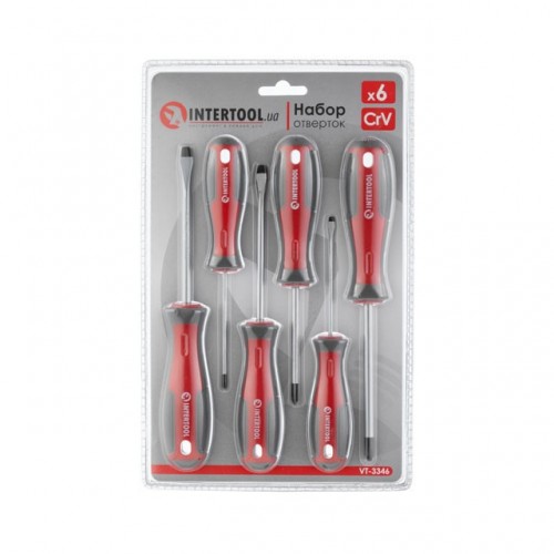Набор отверток 6 ед (SL3.0*75мм, SL5.0*100мм, SL6.0*100мм, PH0*75мм, PH1*75мм, PH2*100мм) INTERTOOL VT-3346