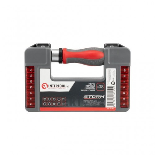 Отвертка реверсивная с комплектом насадок и головок 38 ед, STORM INTERTOOL VT-3638