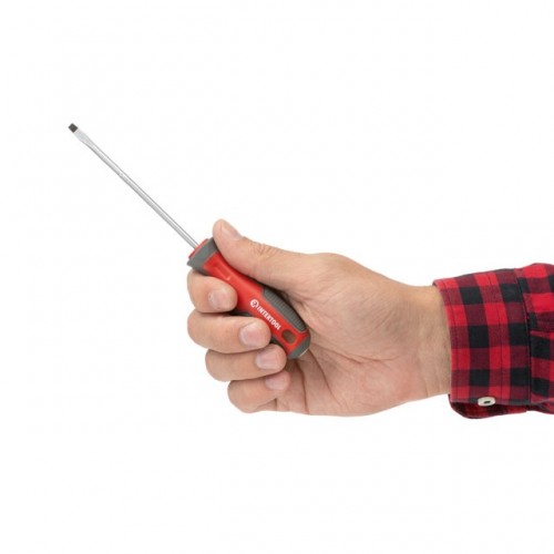 Стержень отвертки изготовлен из прочной Cr-V стали, которая известна всем мастерам своей надежностью и выносливостью. В составе этой стали присутствуют хром и ванадий, которые придают изделию высокую стойкость к износу. Также сталь отличается долговечностью и не подвержена хрупкому разрушению.