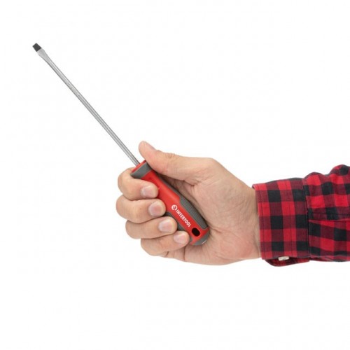Стержень отвертки изготовлен из прочной Cr-V стали, которая известна всем мастерам своей надежностью и выносливостью. В составе этой стали присутствуют хром и ванадий, которые придают изделию высокую стойкость к износу. Также сталь отличается долговечностью и не подвержена хрупкому разрушению.