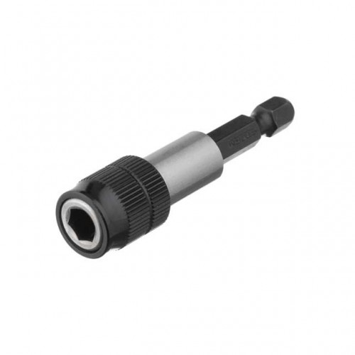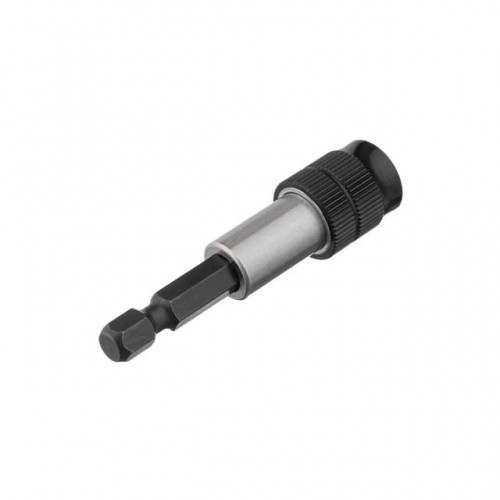 В держателе установлен магнит силой 400 г, который надежно фиксирует биты и облегчает вкручивание винтов. Помимо магнита реализован фиксатор, который исключает выпадение бит при работе. Оттянув втулку держателя назад вы легко установите и освободите биту из посадочного места.