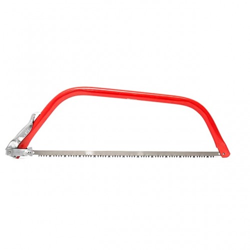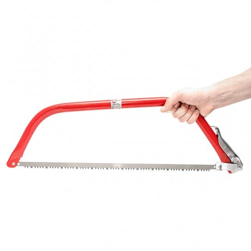 Лучковая ножовка с полотном длиной 610 мм подходит для распиловки деревянных заготовок диаметром до 200 мм. Она имеет эргономичный дизайн корпуса – D-образную форму и относительно небольшой вес. Процесс установки и снятия полотна предельно прост. С помощью металлического фиксатора одним движением можно либо установить, либо снять ножовочное полотно. Полотно ножовки имеет разведенные в две стороны зубья, которые максимально эффективно справляются с древесиной в саду.