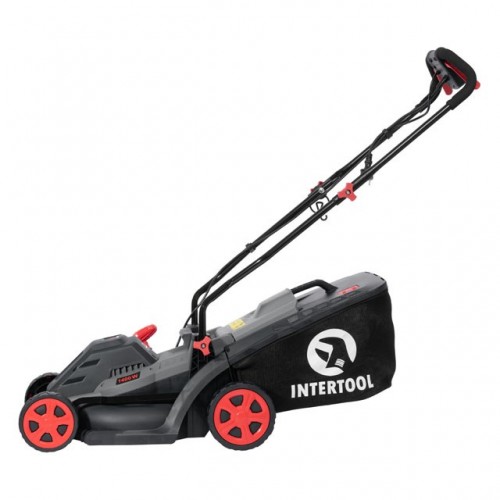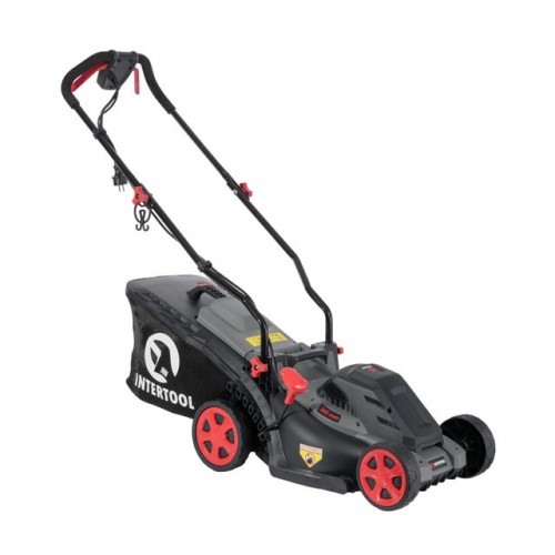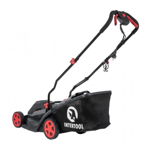 Газонокосилка электрическая 1400 Вт, 230 В~50 Гц, 3300 об/мин, ширина захвата 340 мм, высота среза 30-80 мм, контейнер 35 литров INTERTOOL DT-2264