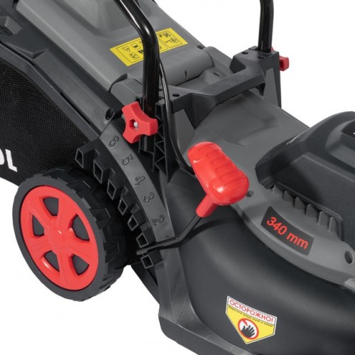 - Высота покоса легко регулируется одним рычагом