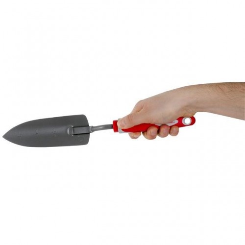 Прочная надежная конструкция не гнется и не ломается в работе. Лоток садовой лопатки изготовлен из цельного листа стали с загнутыми краями. Коническая форма позволяет без проблем справиться даже с твердым сухим грунтом.