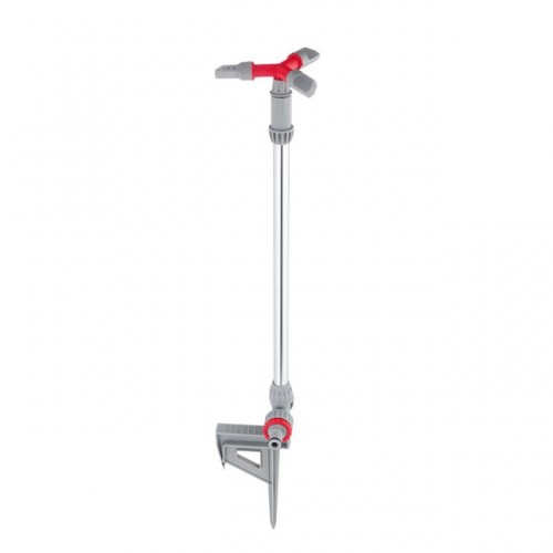 Дождеватель легко переносить с места на место и стационарно устанавливать на необходимом участке. Удобная форма ножки с ручкой для установки, позволяет надежно зафиксировать его в земле.