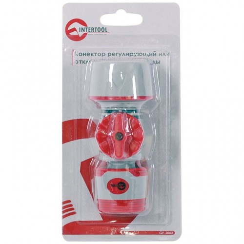Коннектор ТМ INTERTOOL GE-2002 регулирующий или отключающий поток воды – незаменимая вещь, особенно для систем полива с большим напором. Позволяет регулировать интенсивность напора или отключать подачу воды. Так же обеспечивает быструю смену любых насадок оросительной системы на выходном конце шланга не отключая кран общей системы подачи воды. Не требует использования инструментов.
