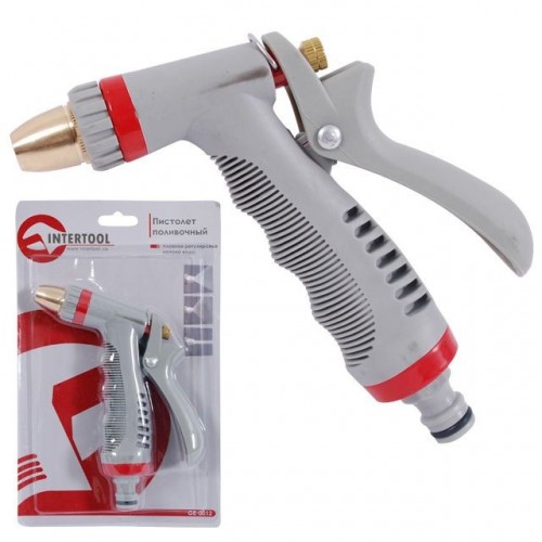 Пистолет-распылитель для полива с плавной регулировкой потока воды. ABS, PP, TPR, ZINC ALLOY, BRASS INTERTOOL GE-0012