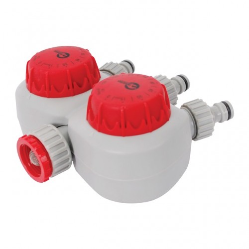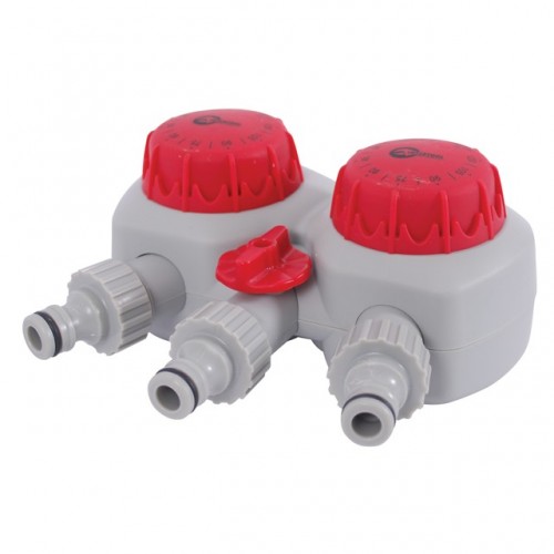 Таймер для подачи воды с двухканальным распределением и тремя выходами на коннектор 1/2" ТМ INTERTOOL GE-2012. Он позволяет разветвлять поток на три канала, автоматически регулировать время прекращения подачи воды на два канала с возможностью установки продолжительности полива от 15 до 120 мин с шагом в 15 мин и регулировкой мощности подачи воды на третий канал, либо полного прекращения подачи. Для работы таймера батареи не требуются. Быстро устанавливается и надежен в использовании.