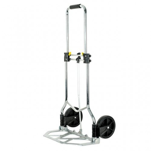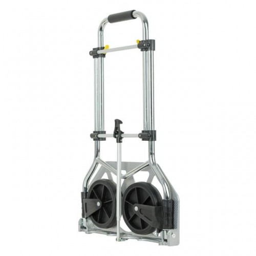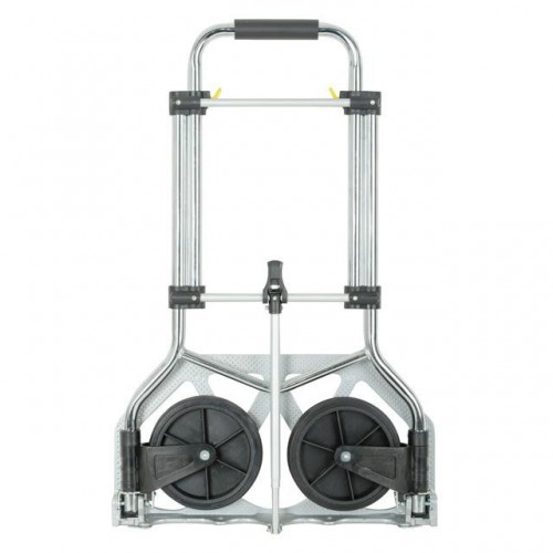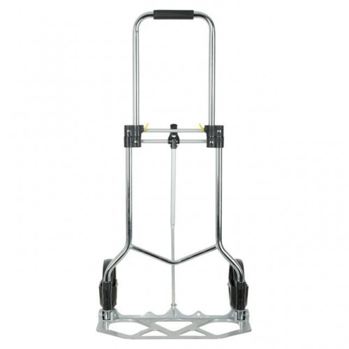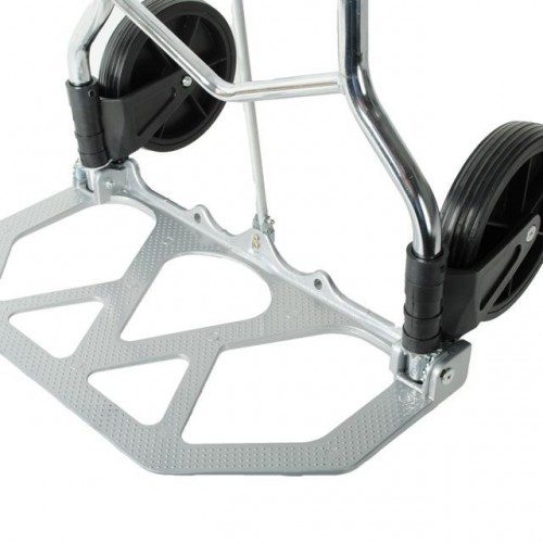 Тележка изготовлена из стали, служит надежно и долговечно. Выдвижная ручка, удобная по высоте (98 см), фиксируется замком, как в сложенном, так и в разложенном виде. Откидная алюминиевая платформа с габаритами 48 х 24 см позволяет быстро подхватывать груз. Надежная, не гнется и не деформируется, благодаря ребрам жесткости, рифленой поверхности и загнутому опорному краю.