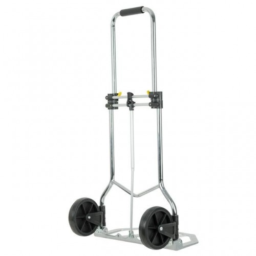 Основными преимуществами этой ручной тележки являются её легкий вес (5 кг) и быстрый переход в рабочее состояние. В сложенном виде она очень компактная (68 х 42 х 5 см), легко помещается в багажник автомобиля. Подготовка к работе осуществляется в два действия: