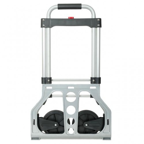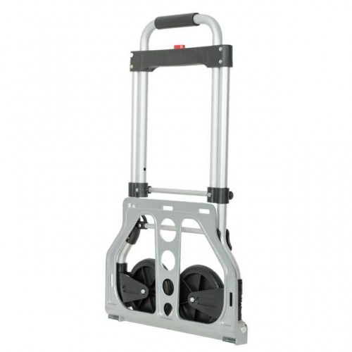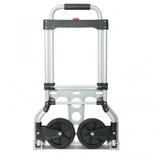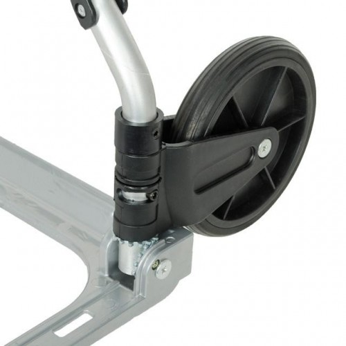 Тележка изготовлена из алюминиевого сплава, служит надежно и долговечно. Выдвижная ручка, удобная по высоте (96 см), фиксируется замком, как в сложенном, так и в разложенном виде. Откидная алюминиевая платформа с габаритами 42 х 28 см позволяет быстро подхватывать груз. Надежная, не гнется и не деформируется, благодаря ребрам жесткости, рифленой поверхности и загнутому опорному краю.