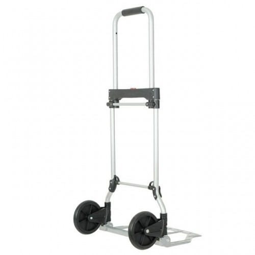 Основными преимуществами этой ручной тележки являются её легкий вес (3.8 кг) и быстрый переход в рабочее состояние. В сложенном виде она очень компактная (71 х 42 х 5 см), легко помещается в багажник автомобиля. Подготовка к работе осуществляется в два действия: