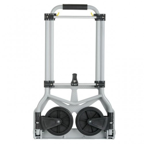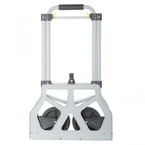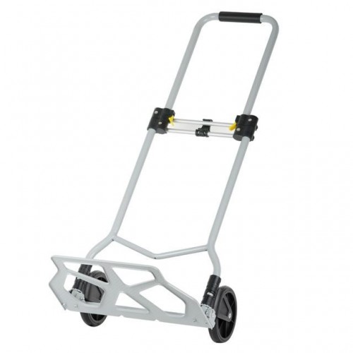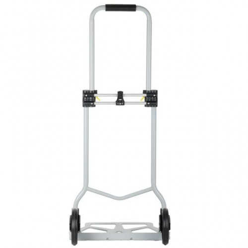 Тележка изготовлена из стали, служит надежно и долговечно. В выдвинутом состоянии ручка удобная по высоте (98 см). Фиксируется замками, как в сложенном, так и в разложенном виде. Откидная стальная платформа с габаритами 42 х 28 см позволяет быстро подхватывать груз. Платформа надежная, не гнется и не деформируется, благодаря ребрам жесткости, рифленой поверхности и загнутому опорному краю.